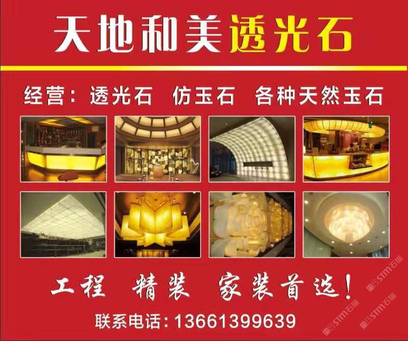 天地和美建材(北京)有限公司專業(yè)生產(chǎn)透光石、雪花石、美潔石、鳳凰石、真藏石、植物標(biāo)本生態(tài)石、云石燈飾及玉石臺(tái)盆的企業(yè),本企業(yè)擁有獨(dú)立的生產(chǎn)車間,先進(jìn)、一流的生產(chǎn)設(shè)備和精湛的生產(chǎn)技術(shù),另外,本企業(yè)擁有雄厚的設(shè)計(jì)能力和生產(chǎn)制造體系,產(chǎn)品選用優(yōu)質(zhì)的材料進(jìn)行加工生產(chǎn),生產(chǎn)過(guò)程嚴(yán)格按照質(zhì)量管理體系執(zhí)行,并且已通過(guò)ISO9000管理體系認(rèn)證,從而使產(chǎn)品達(dá)到品質(zhì)穩(wěn)定可靠、價(jià)格低廉優(yōu)惠、外觀時(shí)尚大方、進(jìn)而使產(chǎn)品享譽(yù)國(guó)內(nèi)外,遠(yuǎn)銷海內(nèi)外。本企業(yè)生產(chǎn)的產(chǎn)品廣泛應(yīng)用于燈飾、透光吊燈、燈柱、地面透光柱、透光吧臺(tái)、透光背景墻、櫥柜臺(tái)面、浴室臺(tái)面、窗臺(tái)面、洗面臺(tái)、廚衛(wèi)墻面、餐桌面、茶幾等,同時(shí)產(chǎn)品具有重量輕、硬度高、防火抗磨、耐酸、耐堿、耐腐蝕、無(wú)輻射、無(wú)縫連接、透光度強(qiáng)等多動(dòng)能特點(diǎn),也屬于新型環(huán)保裝飾材料,被配套使用于住宅、別墅、酒店、會(huì)所、商場(chǎng)及各大大型工程室內(nèi)外裝飾等眾多場(chǎng)合。本企業(yè)秉承“品質(zhì)至上,信譽(yù)”的宗旨和完善的售前售后服務(wù),贏得了廣大客戶和消費(fèi)者的一致好評(píng),熱誠(chéng)歡迎各界人士前來(lái)選購(gòu)、批發(fā)、工程咨詢、燈飾設(shè)計(jì)、來(lái)圖來(lái)樣定做,也歡迎各界人士蒞臨指導(dǎo)。