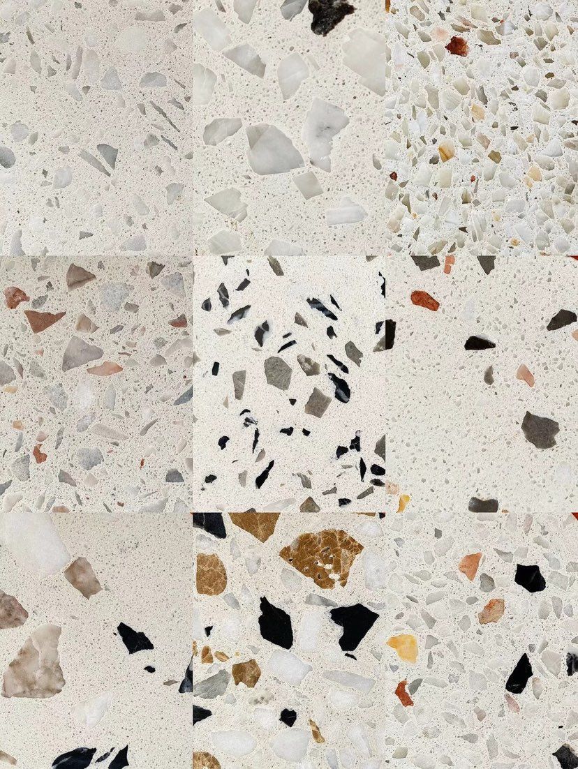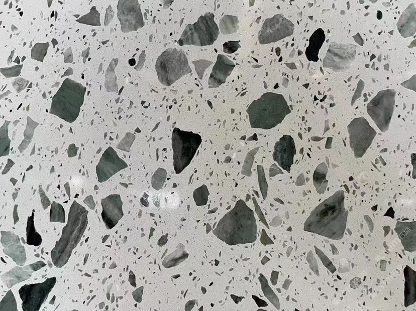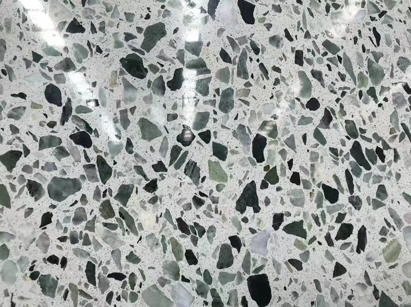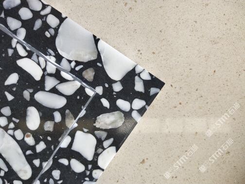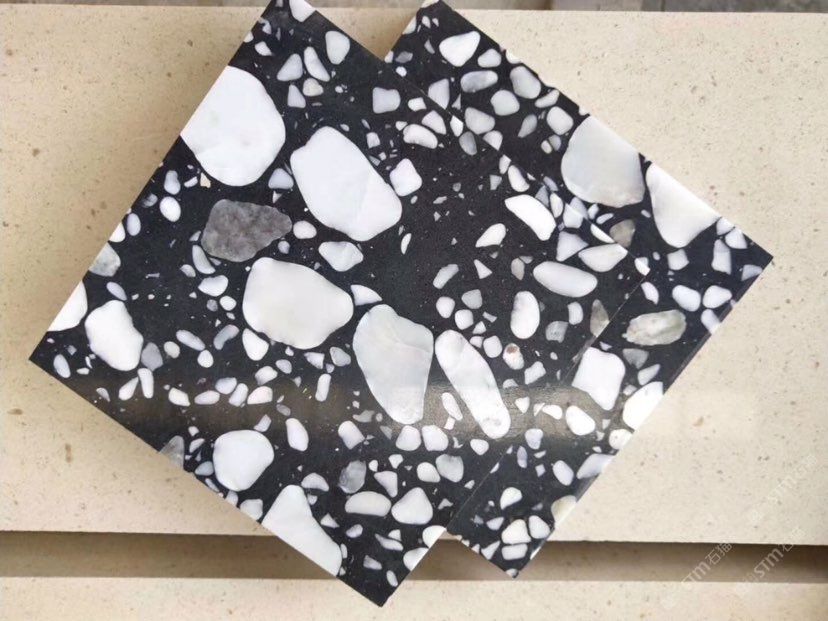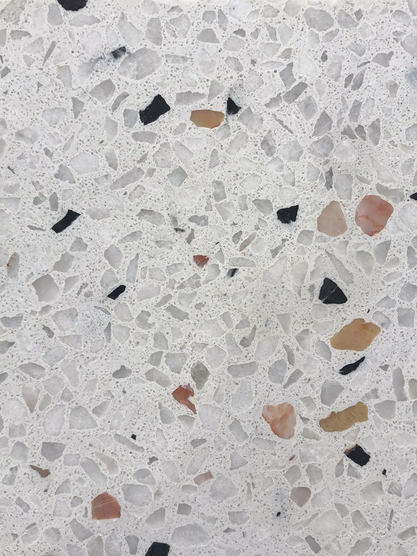 人造無機(jī)水磨石,生產(chǎn)主要原材料,天然礦石沙,高標(biāo)號白水泥和水,經(jīng)過先進(jìn)制作工藝流程壓制成型荒料,再根據(jù)工程設(shè)計厚薄規(guī)格切割成大板。