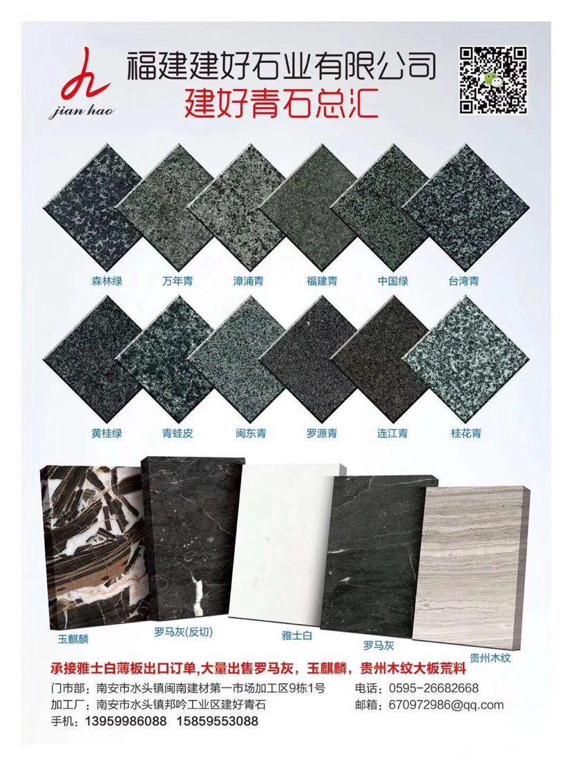 言升(建好)石業(yè)專業(yè)青石供應(yīng)商,自有礦山、實(shí)力工廠、水頭門市部一體;主營(yíng):青石、福建青、萬(wàn)年青、漳浦青、廣西青、萬(wàn)源青、四川青、森林綠、中國(guó)綠、古典綠、輝綠巖、桂林青,臺(tái)灣青等產(chǎn)品;園林景觀,石材背景墻,大板,荒料現(xiàn)貨供應(yīng)15375868088 13959986088;歡迎您來(lái)電溝通洽談業(yè)務(wù)!