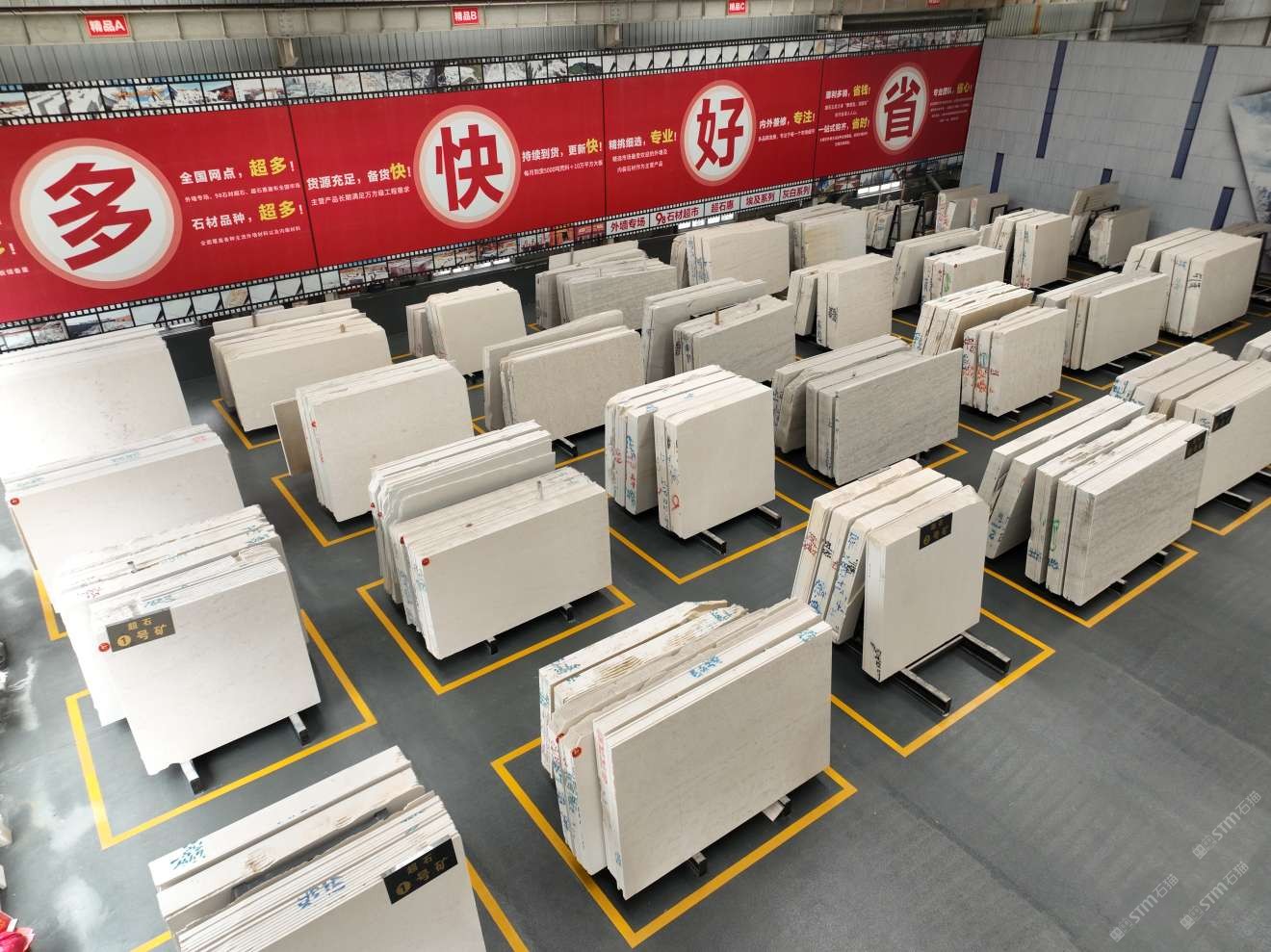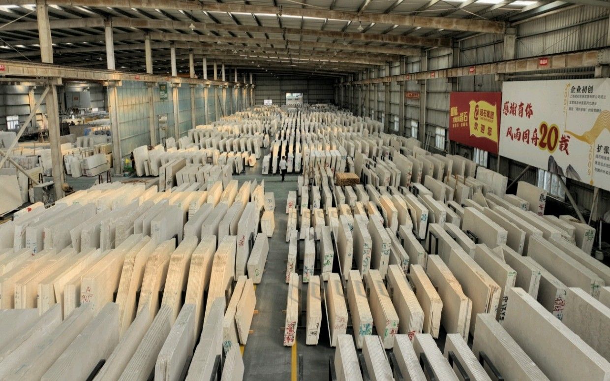 其中超石上海工廠,占地45000平方,擁有8臺(tái)大拉鋸、3臺(tái)進(jìn)口磨機(jī),工人150多名,年產(chǎn)量150萬平米。