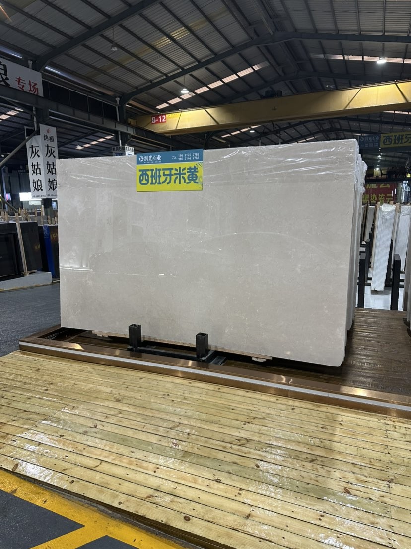 潤(rùn)光石業(yè)長(zhǎng)期大量供應(yīng)西班牙米黃,荒料5千噸,現(xiàn)貨1萬(wàn)平以上,東升石材城1號(hào)通道B19區(qū),歡迎您的到來,18671467788。