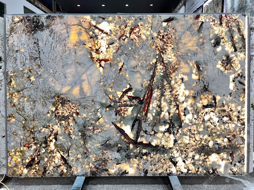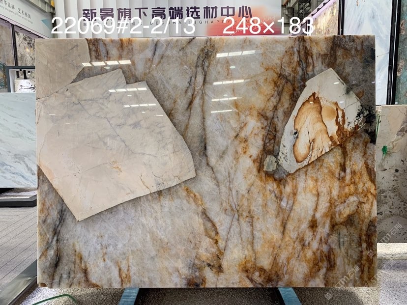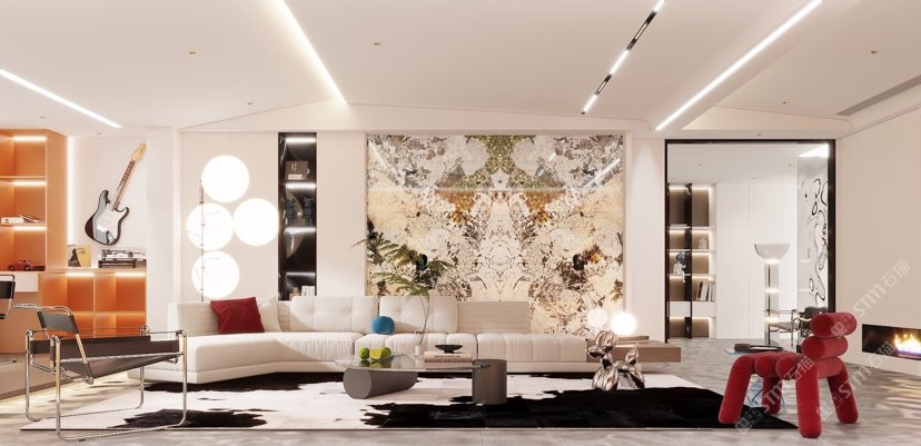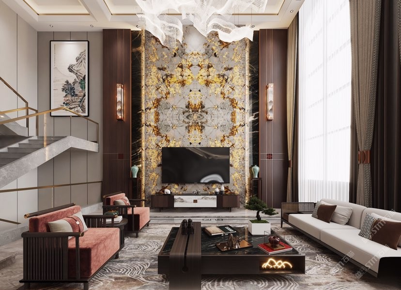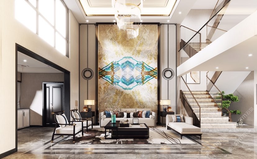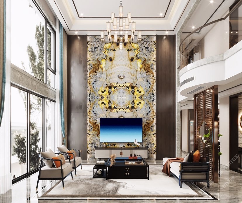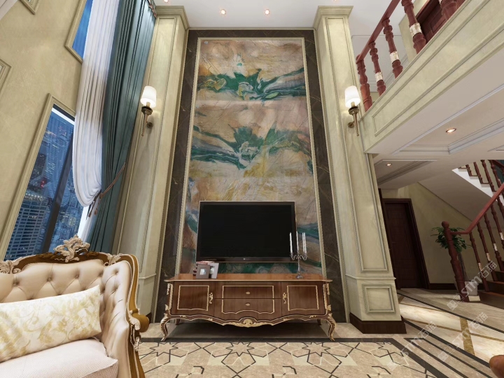 幸福家景定位于高端家裝精品石材批發(fā)商,建立了天然玉石、天然石英石、山水畫(huà)等三大板塊為主的天然石材背景墻體系!