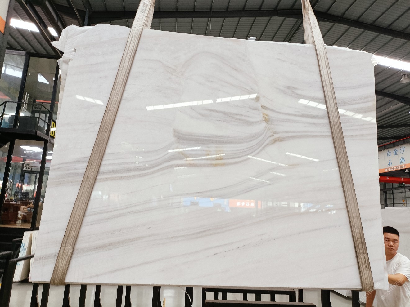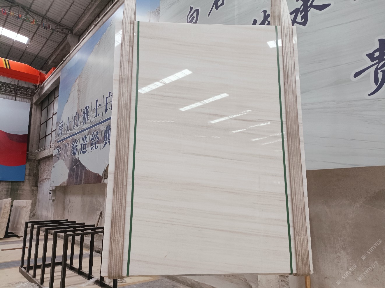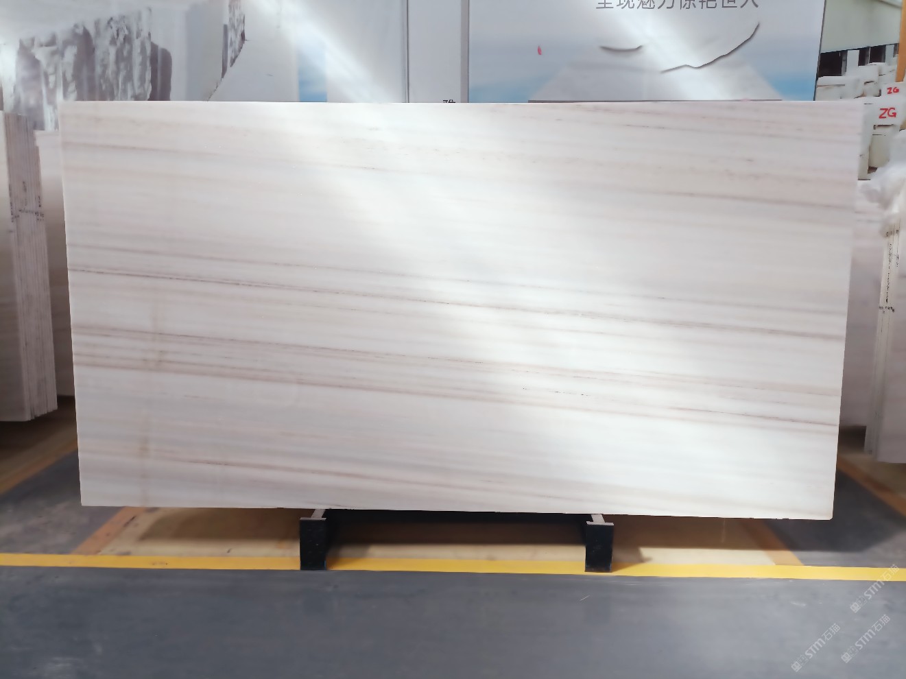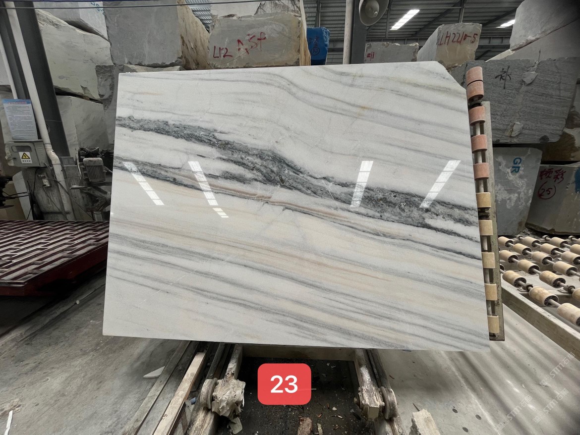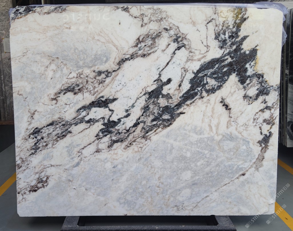 云浮站石材公司開發(fā)的歐亞白獨立礦山,專屬道路,礦口面積約 725 畝,證件齊全。今年礦口開采出直紋,亂紋優(yōu)質(zhì)大板材料,礦山采用單面墻平臺開采方式,10臺繩鋸、5臺鏟車、5臺勾機、一臺 30 噸叉車,共有職工40人,已有兩個開采平臺。礦山已開采多年,道路、設施都已成熟,現(xiàn)產(chǎn)能穩(wěn)定增長。品質(zhì)非常穩(wěn)定,一石兩面分別可以產(chǎn)出直紋和亂紋兩種紋路,材質(zhì)為細膩的玉質(zhì)品體。