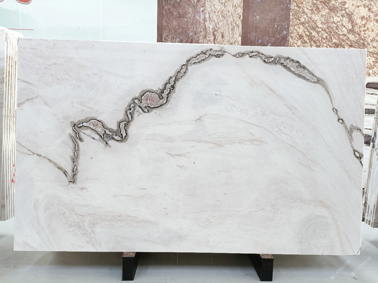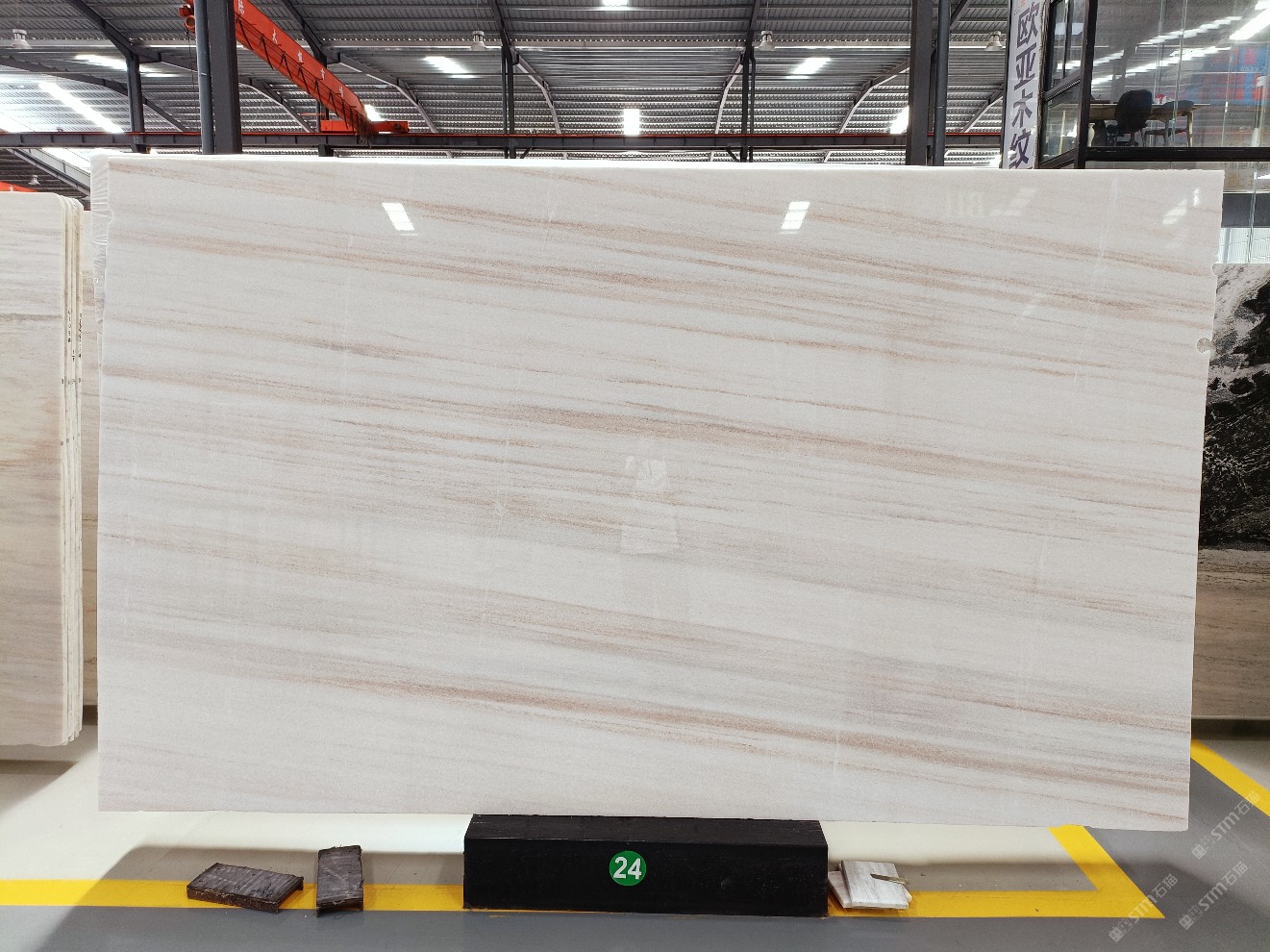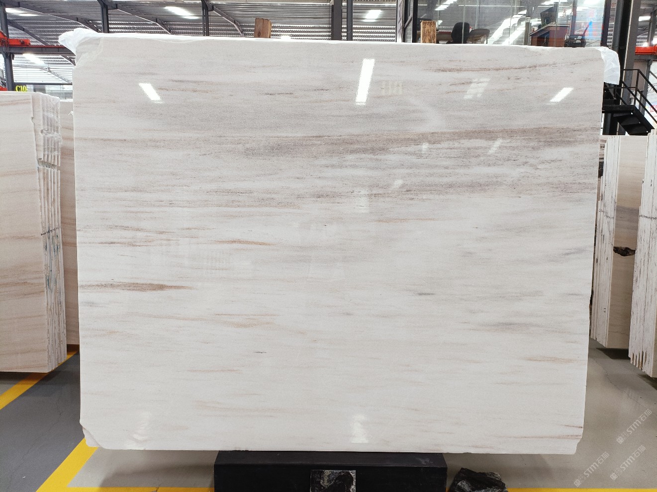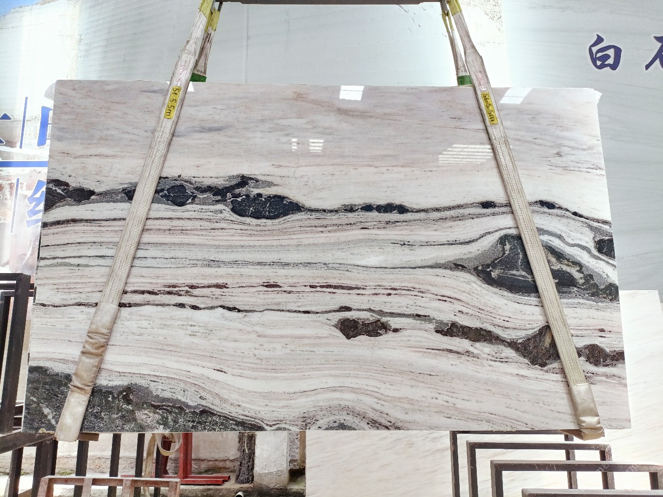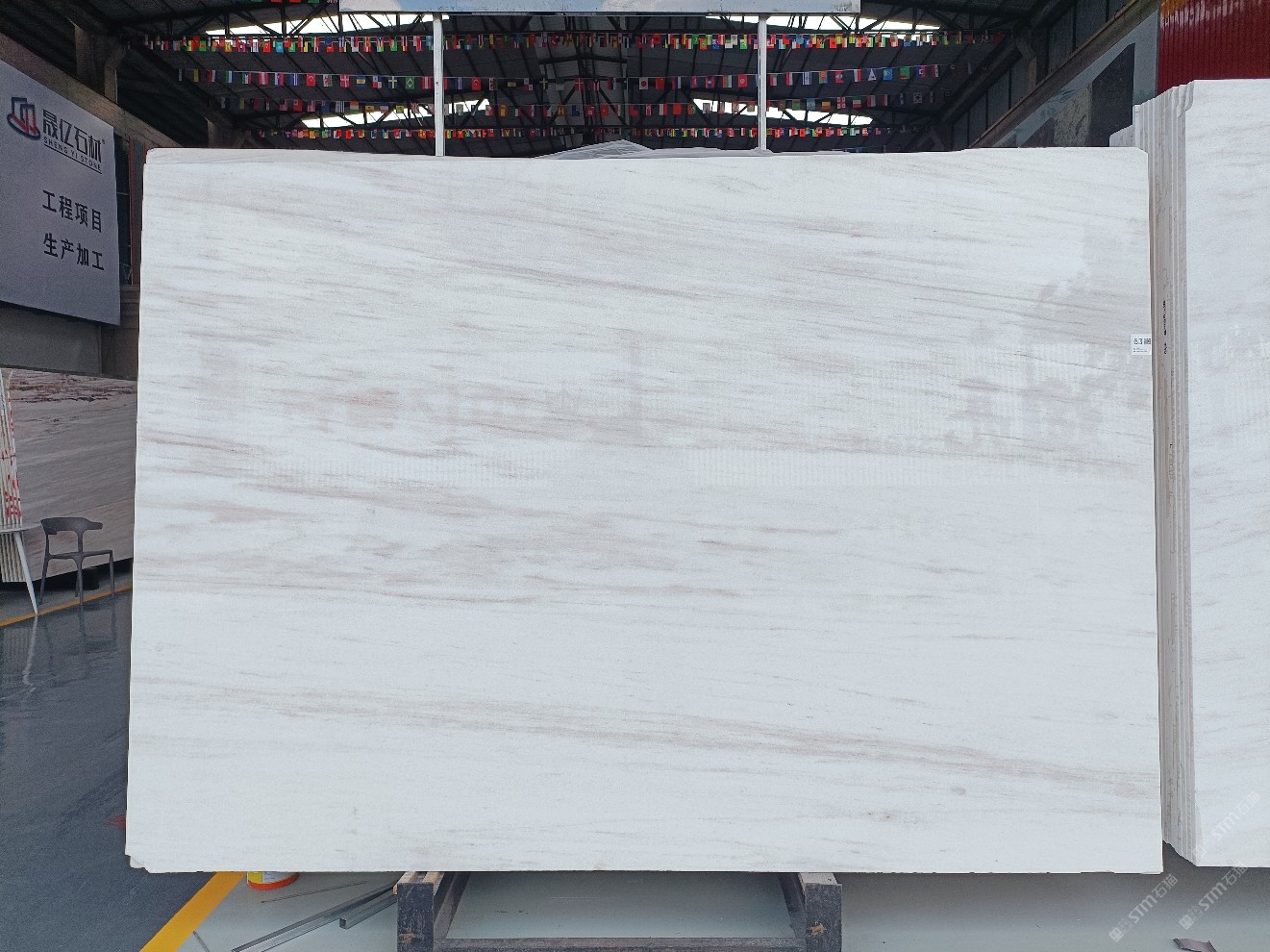 云浮站石材公司開發(fā)的歐亞白獨立礦山,專屬道路,礦口面積約 725 畝,證件齊全。今年礦口開采出直紋,亂紋優(yōu)質(zhì)大板材料,礦山采用單面墻平臺開采方式,10臺繩鋸、5臺鏟車、5臺勾機、一臺 30 噸叉車,共有職工40人,已有兩個開采平臺。礦山已開采多年,道路、設施都已成熟,現(xiàn)產(chǎn)能穩(wěn)定增長。品質(zhì)非常穩(wěn)定,一石兩面分別可以產(chǎn)出直紋和亂紋兩種紋路,材質(zhì)為細膩的玉質(zhì)品體。