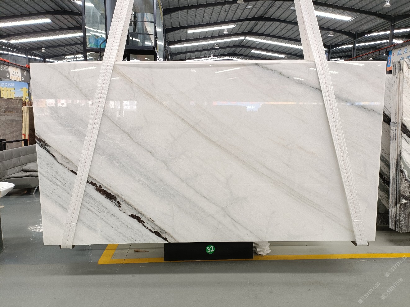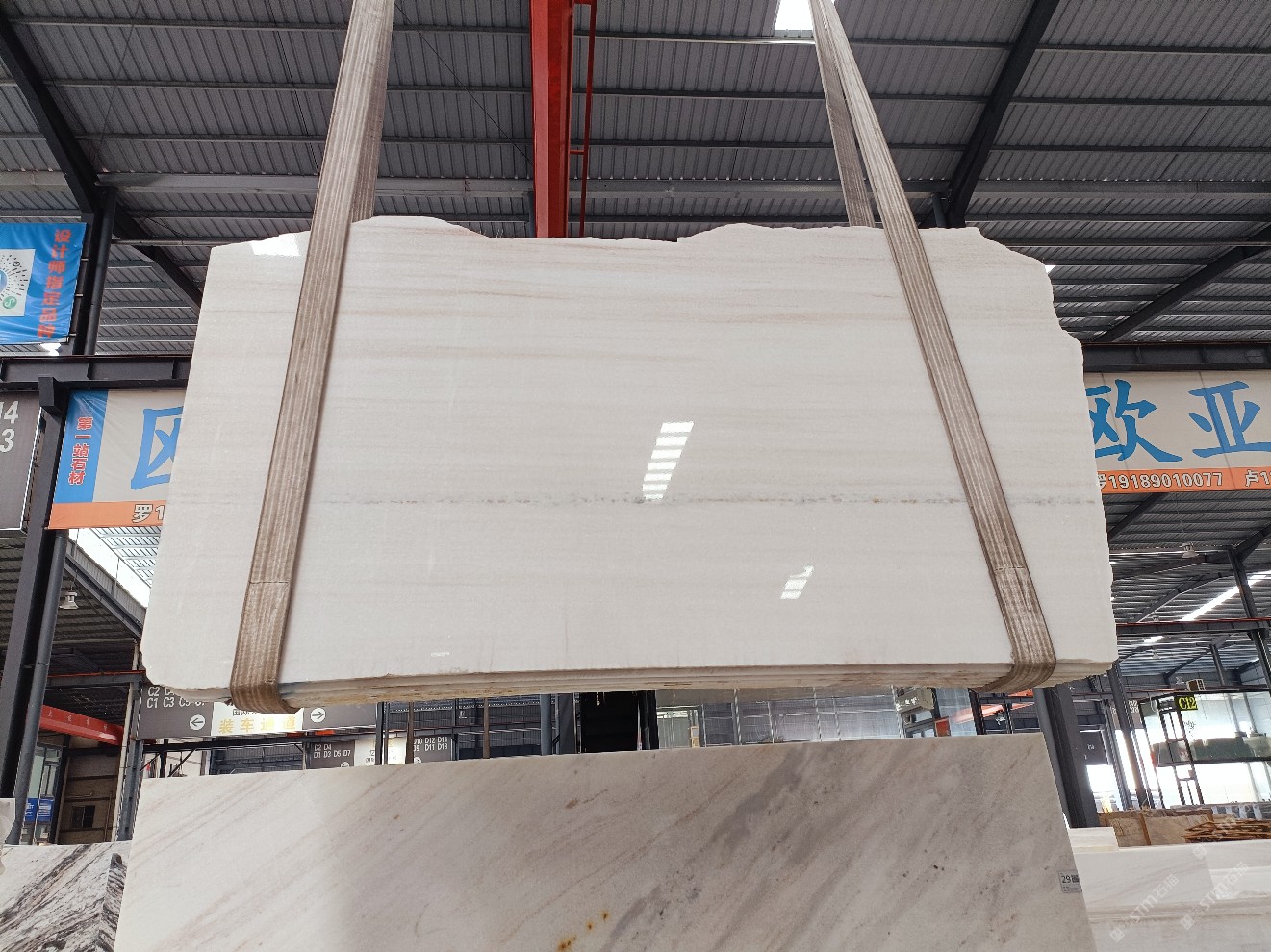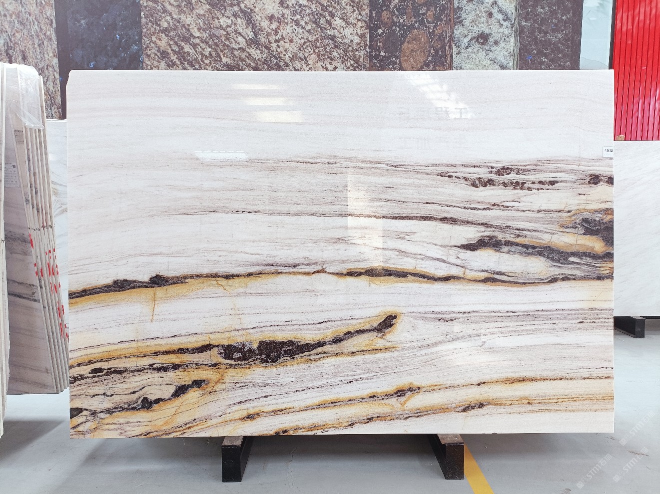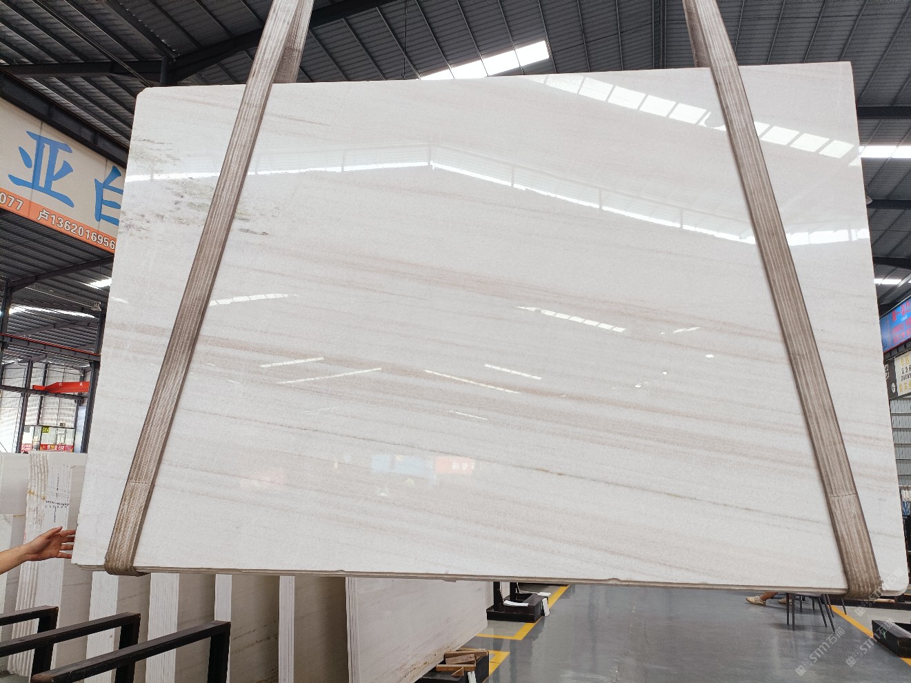 云浮站石材公司開發(fā)的歐亞白獨立礦山,專屬道路,礦口面積約 725 畝,證件齊全。今年礦口開采出直紋,亂紋優(yōu)質(zhì)大板材料,礦山采用單面墻平臺開采方式,10臺繩鋸、5臺鏟車、5臺勾機、一臺 30 噸叉車,共有職工40人,已有兩個開采平臺。礦山已開采多年,道路、設施都已成熟,現(xiàn)產(chǎn)能穩(wěn)定增長。品質(zhì)非常穩(wěn)定,一石兩面分別可以產(chǎn)出直紋和亂紋兩種紋路,材質(zhì)為細膩的玉質(zhì)品體。