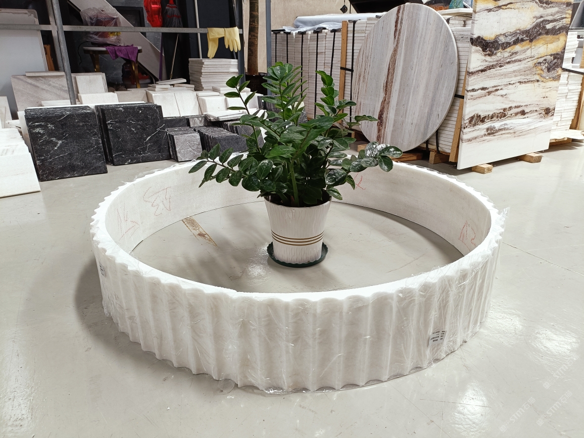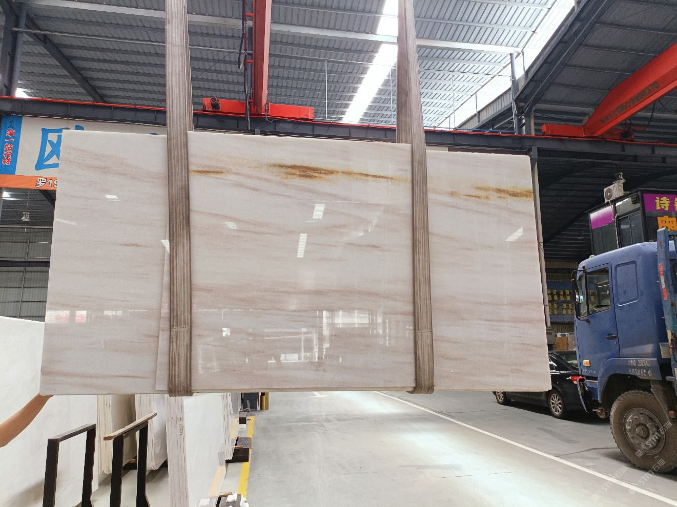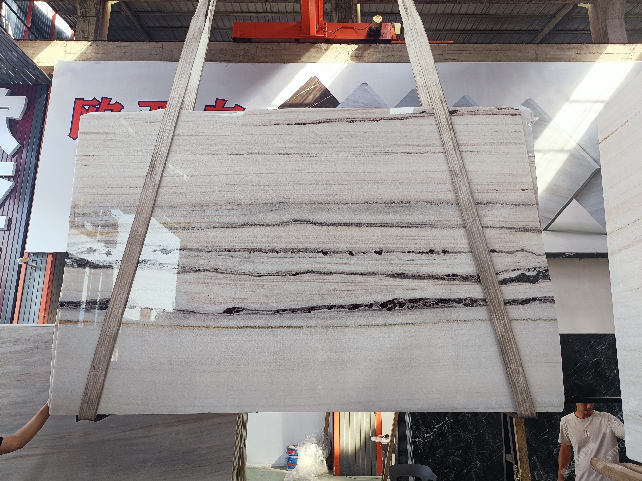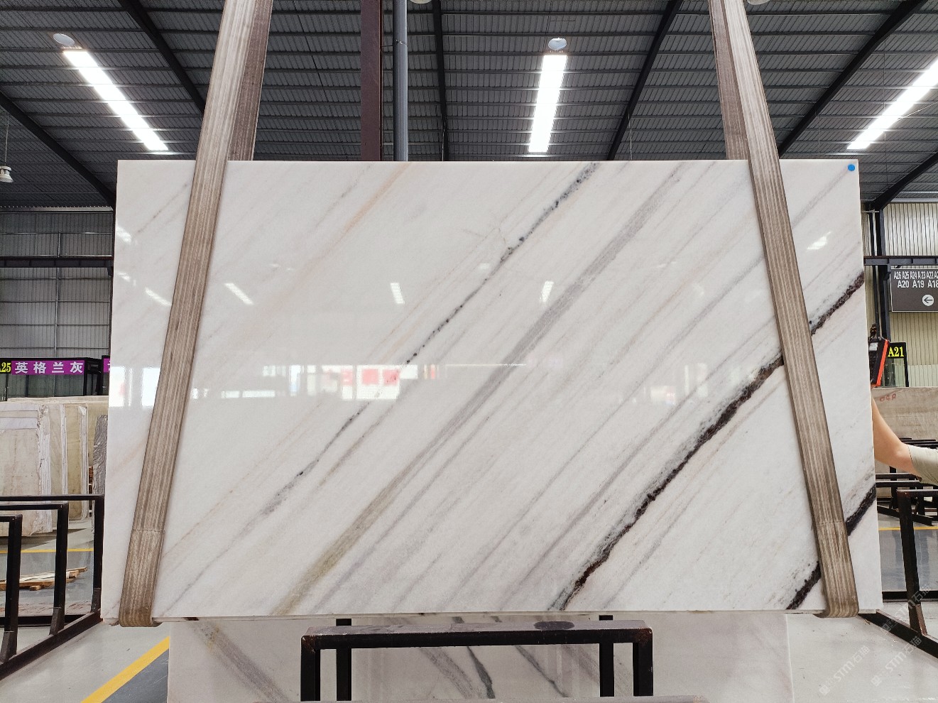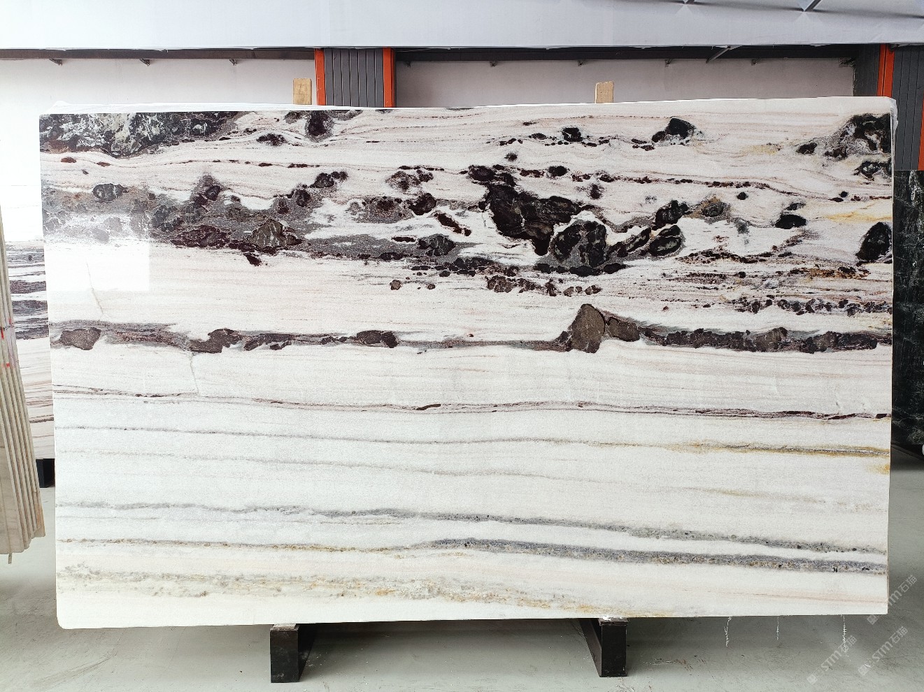 云浮站石材公司開發(fā)的歐亞白獨立礦山,專屬道路,礦口面積約 725 畝,證件齊全。今年礦口開采出直紋,亂紋優(yōu)質(zhì)大板材料,礦山采用單面墻平臺開采方式,10臺繩鋸、5臺鏟車、5臺勾機、一臺 30 噸叉車,共有職工40人,已有兩個開采平臺。礦山已開采多年,道路、設施都已成熟,現(xiàn)產(chǎn)能穩(wěn)定增長。品質(zhì)非常穩(wěn)定,一石兩面分別可以產(chǎn)出直紋和亂紋兩種紋路,材質(zhì)為細膩的玉質(zhì)品體。