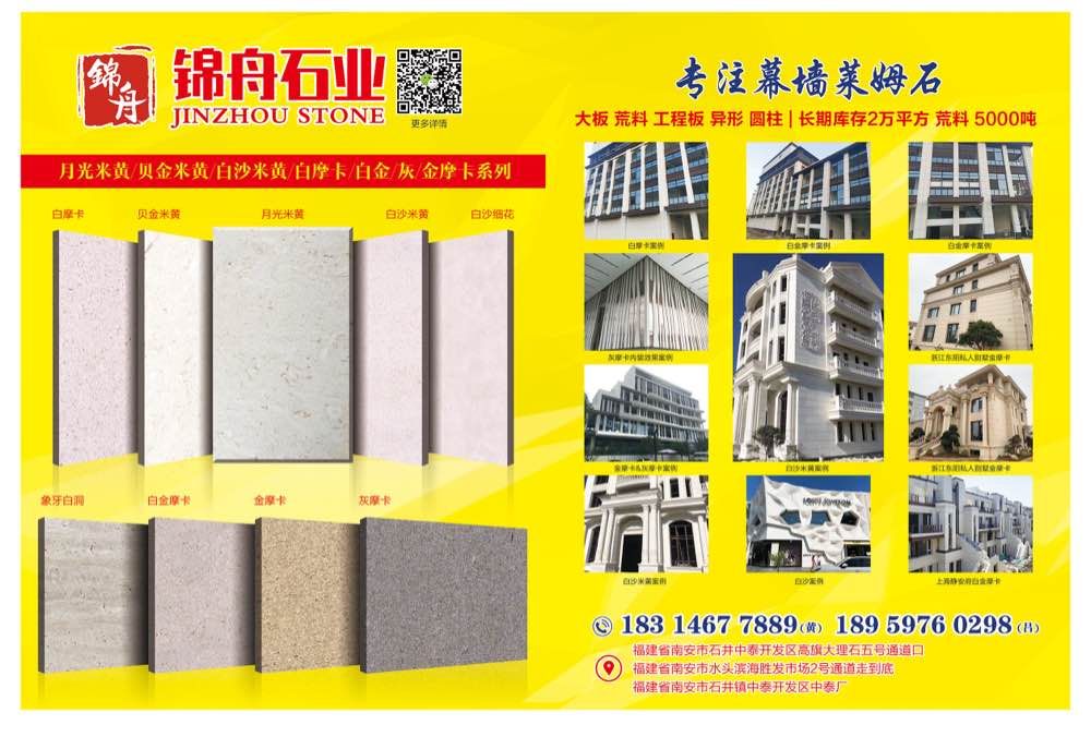 錦舟石業(yè)主營(yíng):白沙,白沙米黃,百里香,香貝,月光米黃,貝金米黃,伊麗莎白,貝寧白白摩卡,白金摩卡,金摩卡,灰摩卡,維納多,沉香米黃,沙浪米黃等幕墻萊姆石材