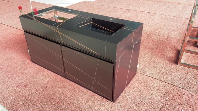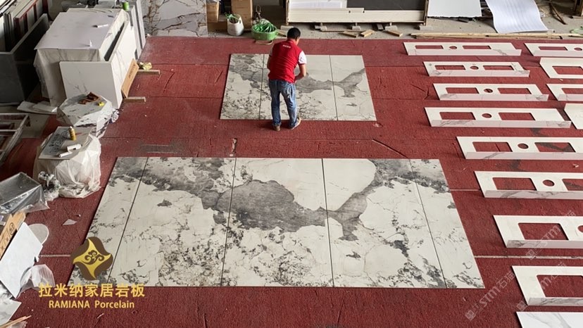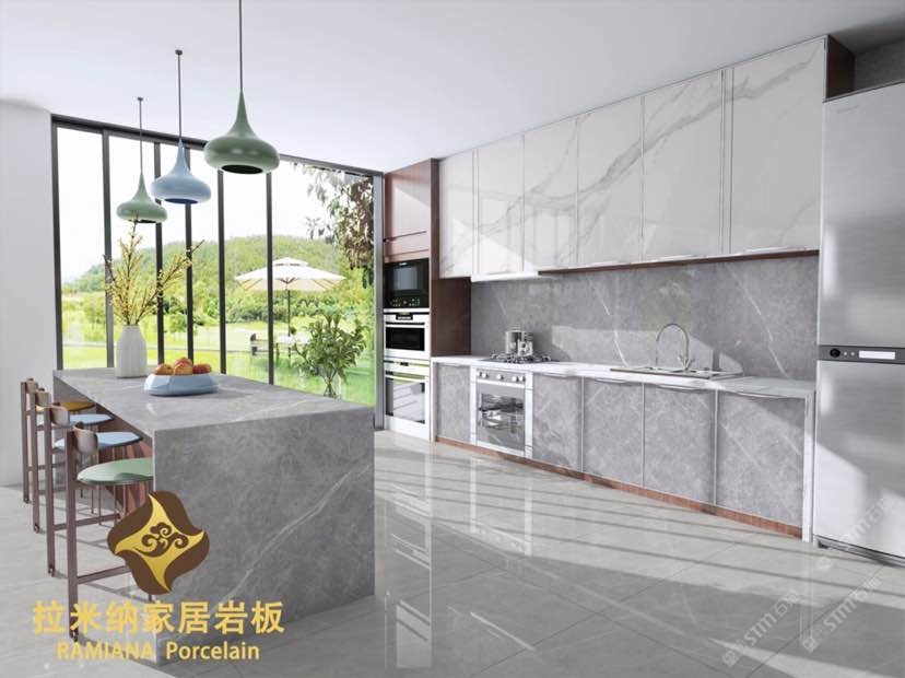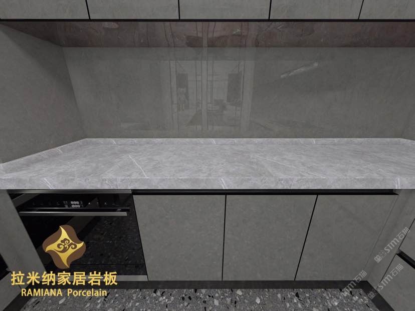拉米納家居巖板(RAMIANA Porcelain),硬度堪比石英石,亮度高,抗污、耐熱、防刮、耐用、易清潔。
