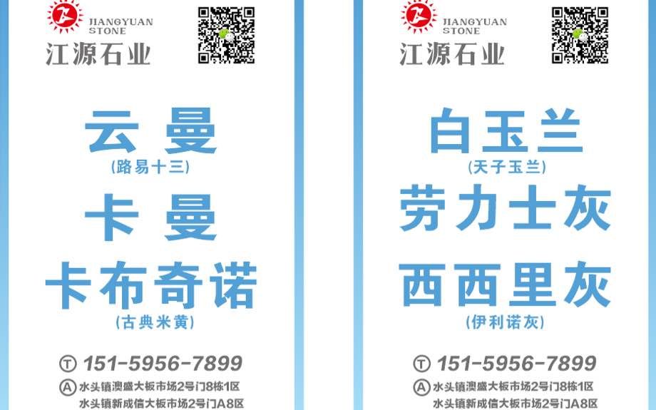江源石業(yè)主營:白玉蘭、西西里灰、云曼、路易、卡曼、古典米黃(卡布奇諾)、勞力士灰(新月亮谷)、阿里灰(星耀灰)、伊利諾灰、云多拉灰…超大量供應精品現(xiàn)貨,任您挑選,趕緊搶購吧!