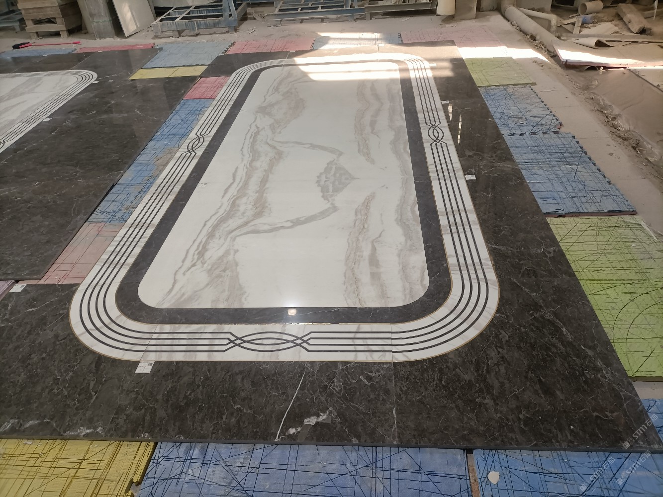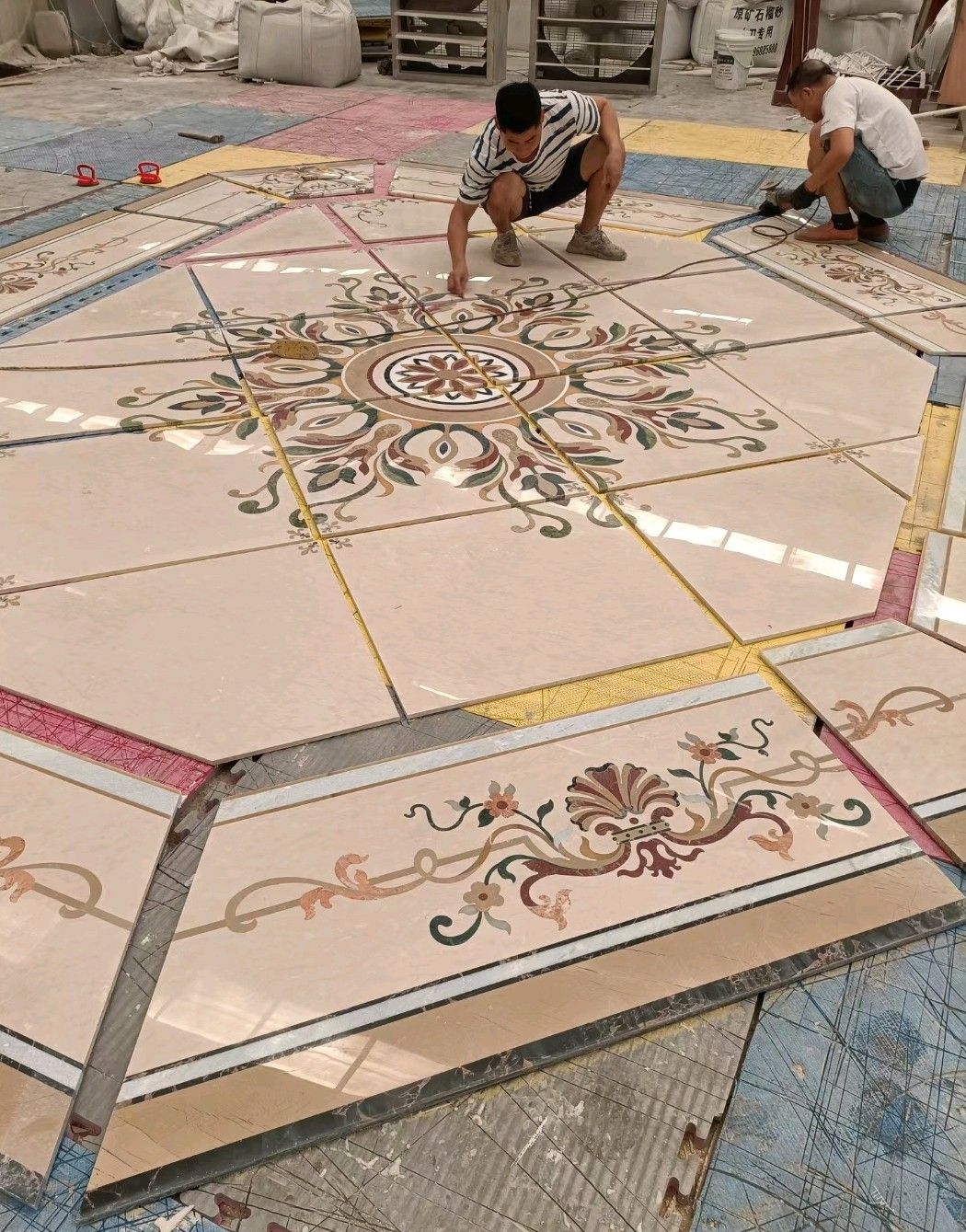 公司水刀拼花生產(chǎn)線:擁有6臺大型水刀設(shè)備,拼花年產(chǎn)量達(dá)10000多平方米。水刀師傅從業(yè)時間久,誠信務(wù)實(shí),質(zhì)量好!所生產(chǎn)的工藝拼圖暢銷全國及世界各地,是別墅建筑至善至美的選擇。