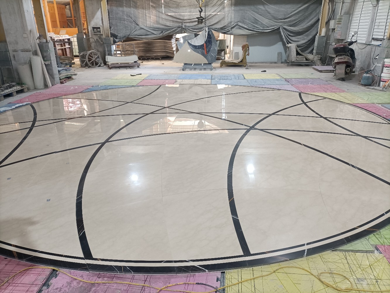 熊大水刀拼花,集石材水刀拼花(拼花鑲嵌貝殼類/拼花鑲嵌銅板類/拼花鑲嵌鋼板類)、石材產(chǎn)品開發(fā)及工藝設(shè)計生產(chǎn)等為一體的頗具規(guī)模的企業(yè)。公司設(shè)有石材工藝展廳、位于福建省泉州市南安市水頭鎮(zhèn)蟠龍工業(yè)區(qū)嘉豐二廠工程運(yùn)營中心,擁有兩個大型石材加工廠,設(shè)有水刀拼花生產(chǎn)線,自動水磨石加工生產(chǎn)線。