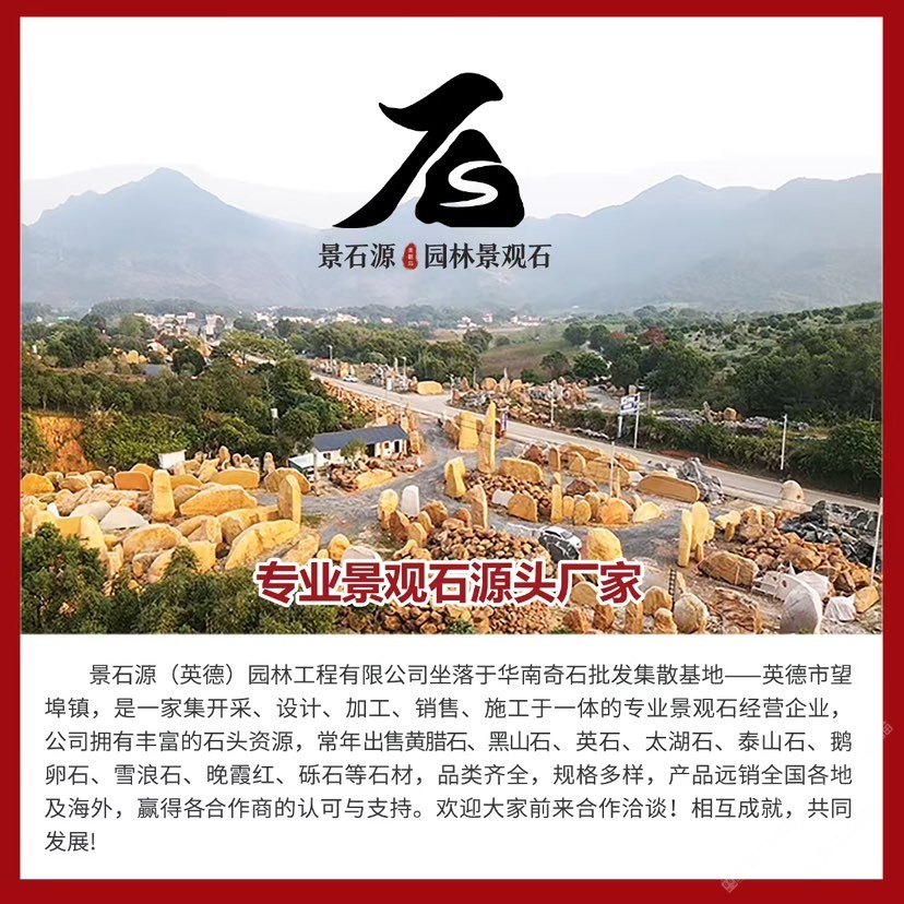 公司位于華南地區(qū)英石之鄉(xiāng)-清遠英德市。本地盛產(chǎn)各種石材、擁有多年的石材銷售經(jīng)驗,自有實體石場。經(jīng)營黃蠟石、英德石、中國黑、太湖石、青花石、黑山石、鵝卵石、青花石、礫石、泰山石、雪浪石、晚霞紅等等多種石材原料??套质?、加工石、樹圍、景墻、地鋪、石槽石臺、水缽、石盆等多種異形加工產(chǎn)品