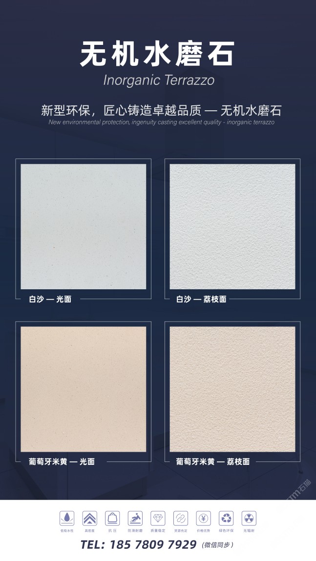 小石頭網(wǎng)絡(luò)科技有限公司自主研發(fā)的無(wú)機(jī)水磨石系列產(chǎn)品,目前提供兩種網(wǎng)紅款式:細(xì)顆粒無(wú)機(jī)水磨石,分為白沙米黃和葡萄牙米黃。這款水磨石密度高,適用于室內(nèi)外,無(wú)需擔(dān)心地面鋪裝出現(xiàn)返堿的問(wèn)題,而且黃金尺寸無(wú)需復(fù)雜排版,色彩保持一致。此外還可以根據(jù)您的需求,定制切割厚度,確保契合您的項(xiàng)目。產(chǎn)品性價(jià)比極高,歡迎隨時(shí)咨詢我們,我們還可以為您提供樣品,為您的工程項(xiàng)目多一個(gè)更好的選擇!