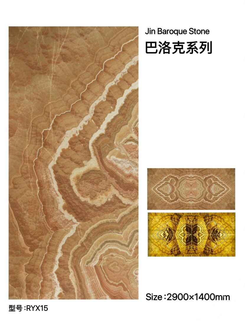 金巴洛克礦石--三大系列:巴洛克系列;鳳凰玉系列;孔雀玉系列!板面紋理富有東方哲學(xué)的美,獨(dú)特的曲線,靈動柔美,層次變化豐富,顏色以柔和桃色為主,色彩過渡自然,透光性呈現(xiàn)黃金般璀璨,3D立體幾何圖案。永恒經(jīng)典的金字塔斜紋;祥云紋;水紋和鳳紋是金巴洛克石的獨(dú)有符號!無論是用于家居裝飾還是商業(yè)空間,都能給人帶來意想不到的驚喜,期待你的發(fā)現(xiàn)。聯(lián)系/微信??:15960638449;地址:鵬翔石材城3號門F15區(qū)金巴洛克石業(yè)!