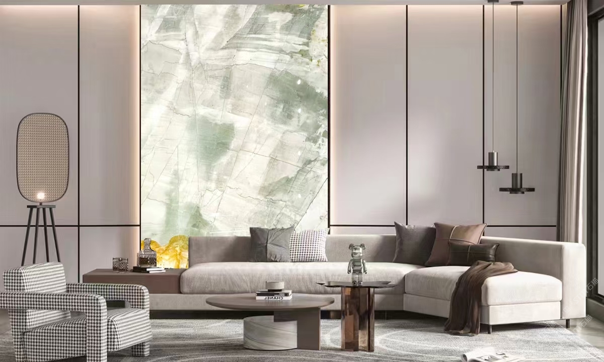 發(fā)布信息: 佰達(dá)奢石「筆墨山河」 編號:BD-333 規(guī)格:3340X1890mm 筆墨隨風(fēng)舞,行事若流云,「筆墨山河」似乎將大自然的鬼斧神工融入人文畫作,自然裂紋像極隨意的潑墨,又似寫意山水貫穿古今,在穆穆文雅與肅然莊重之間奠定的“隱奢”生活基調(diào)