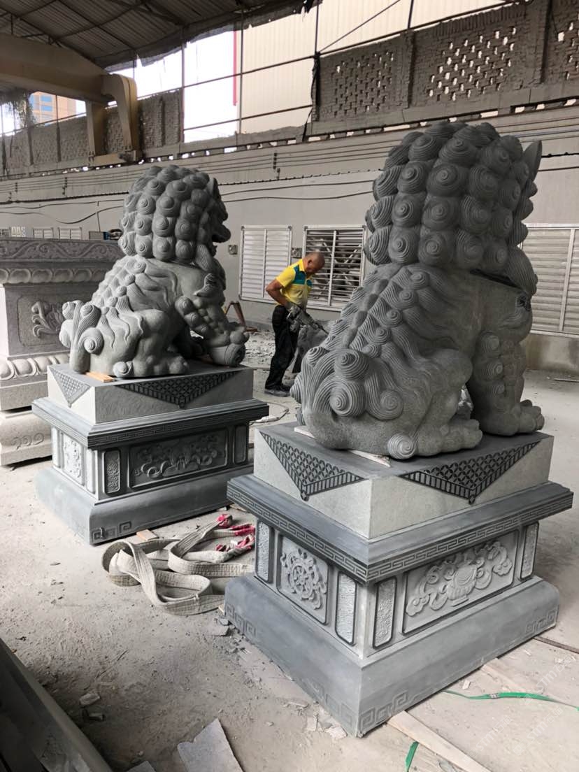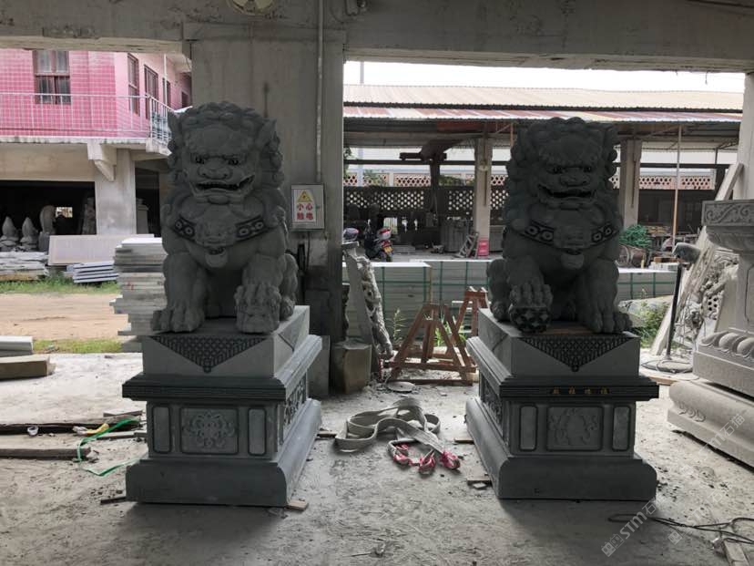 石雕青石獅子,招財進寶,辟邪轉運。