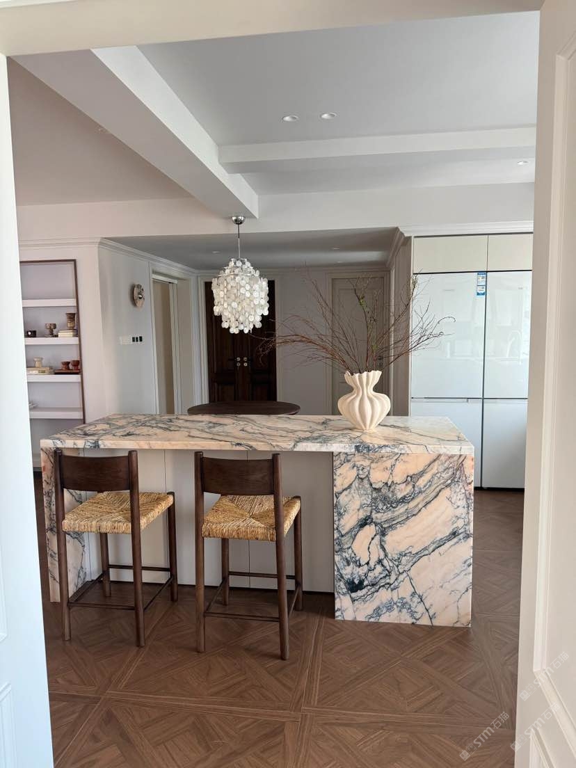 煙粉廚房島臺
