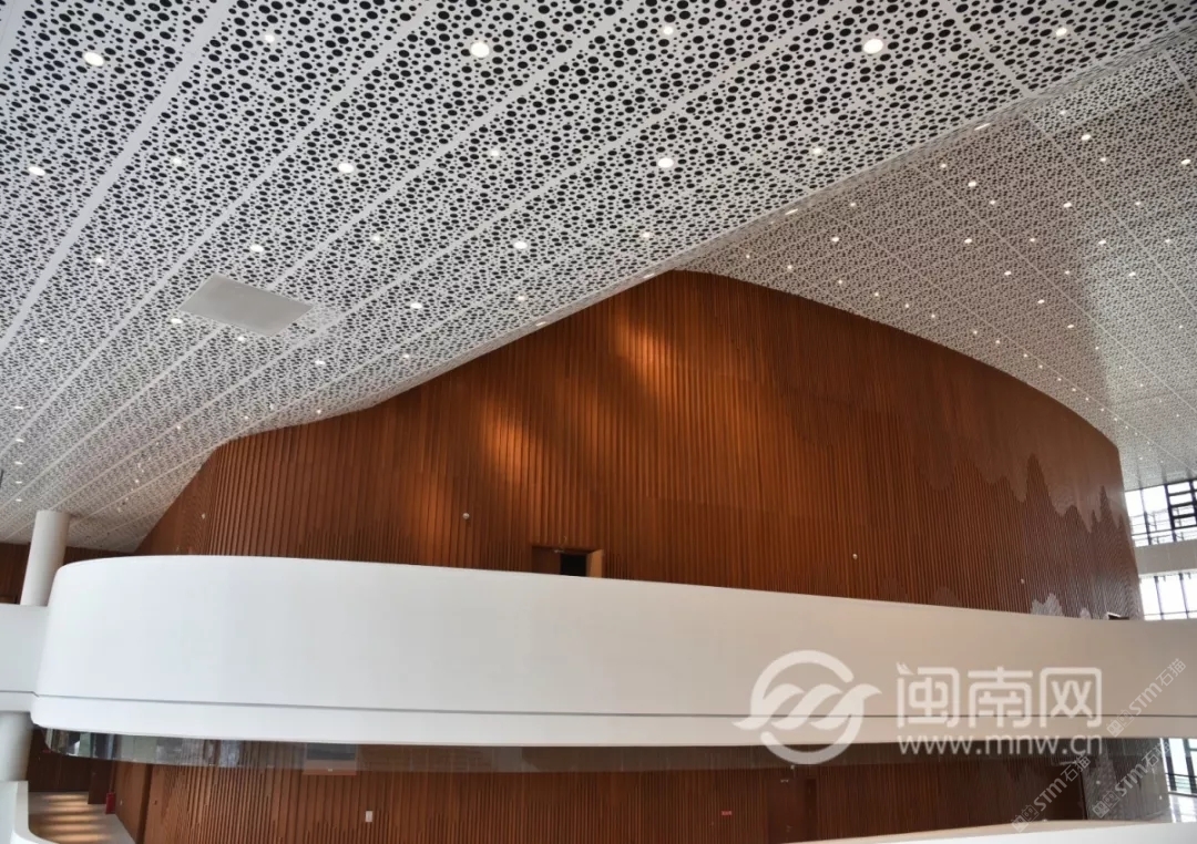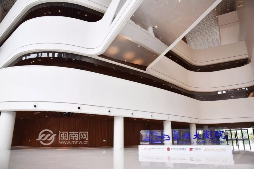發(fā)布信息: 泉州大劇院整體設(shè)計(jì)猶如市花“刺桐花”的泉州市公共文化中心,環(huán)灣面海,欣欣向榮。公共文化中心位于東海片區(qū)山海中軸線中段,毗鄰泉州市政府,四大主體文化場館泉州科技與規(guī)劃館、東海工人文化宮、泉州大劇院、泉州圖書館一起成為“亞洲多元文化發(fā)展中心”。自2015年8月項(xiàng)目啟動(dòng)建設(shè)以來,倍受泉州市民關(guān)注,這里將成為文化新家園。 “四朵花瓣”之一的泉州大劇院即將于2019年6月30日率先揭幕。 18日上午, 泉州大劇院舉行了 開幕演出季新聞發(fā)布會(huì)。 坐落于東海的泉州市公共文化中心 “四朵花瓣”之一的“海絲之花” 率先揭開了神秘面紗。 室內(nèi)設(shè)計(jì)延續(xù)外立面元素, 抽取海洋元素疊浪與海面波光等為設(shè)計(jì)意向, 水平向的穿孔鋁板像絲綢一般輕盈通透, 表達(dá)出舞蹈的節(jié)奏與音樂的韻律, 也體現(xiàn)出泉州作為“海上絲綢之路”起點(diǎn)城市的文化特點(diǎn)。“海絲樂章”為設(shè)計(jì)主題, 建筑外立面設(shè)計(jì)采用雙層表皮結(jié)構(gòu), 內(nèi)層為玻璃幕墻,外層為金屬穿孔鋁板表皮, 水平方向的波浪形曲線設(shè)計(jì)室內(nèi)設(shè)計(jì)延續(xù)外立面元素, 抽取海洋元素疊浪與海面波光等為設(shè)計(jì)意向, 水平向的穿孔鋁板像絲綢一般輕盈通透, 表達(dá)出舞蹈的節(jié)奏與音樂的韻律, 也體現(xiàn)出泉州作為“海上絲綢之路”起點(diǎn)城市的文化特點(diǎn)。