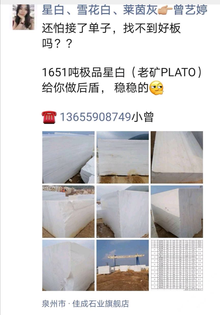 發(fā)布信息: 【大量 星白】 老礦PLATO星白 40個(gè)柜 荒料可賣(mài)?。?!可訂切 聯(lián)系電話:13860761011呂