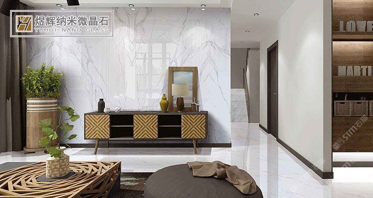 魚肚白微晶石電視背景墻,巖板熱彎加工,影視墻地臺(tái)