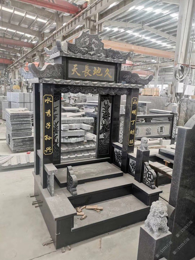 G654芝麻黑柬埔寨黑黑色墓碑石套墓花崗巖石材廠家