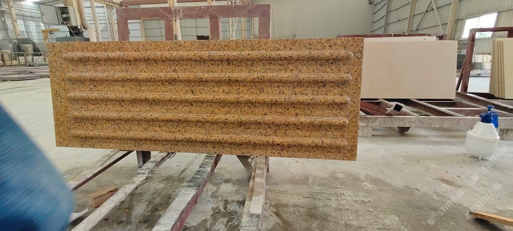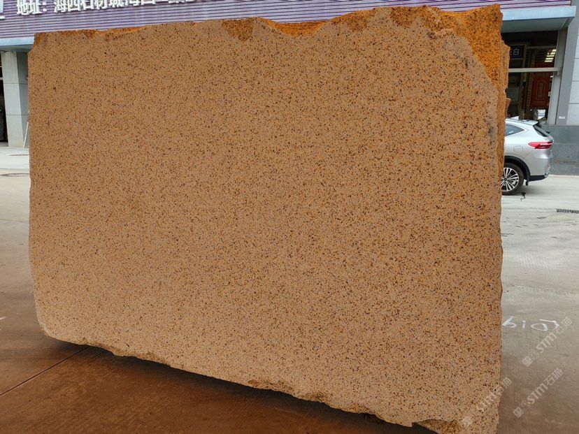荔枝面比黃金麻更黃,光面比黃金麻油水更足,你會懷疑是不是電解板,再回頭看看荒料,黃金麻和輝煌金的荒料放在一起直觀的感受就是黃金麻是小黃,輝煌金是大黃。