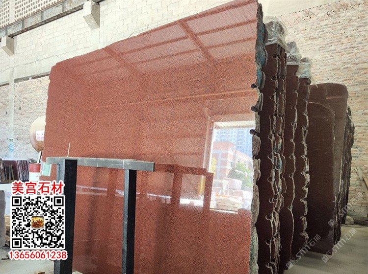 印度紅石材光面超大板紅色花崗巖光板干掛地鋪加州金麻