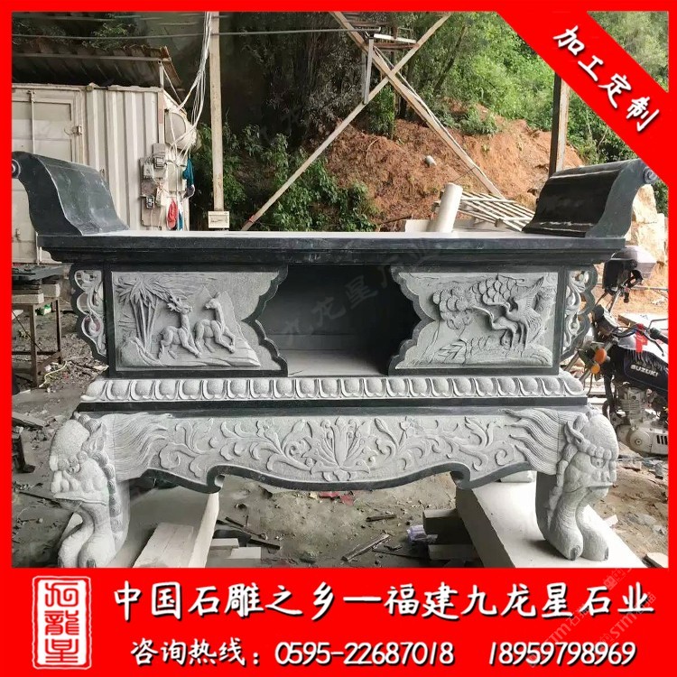 發(fā)布信息: 惠安石雕供桌報價格根據(jù)它的大小及工藝的復(fù)雜程度價格區(qū)間一般在8000-30000元每套。 九龍星石業(yè)是石雕供桌廠家,常年批發(fā)石雕寺廟供桌、石雕祠堂供桌、石雕家用供桌,歡迎咨詢我們(18959798969) 石雕供桌,經(jīng)常出現(xiàn)在寺廟或者是宗堂,用以在上面擺放祭祀的貢品。在有一些家庭當(dāng)中,人們也常常會擺放一張供桌,在家里進(jìn)行祭拜或是祭祀活動等等。 石雕供桌整體看起來構(gòu)圖雖然簡單,但布局勻稱,簡單中帶點(diǎn)細(xì)節(jié),很多石雕供桌雖然造型簡單,但主要都是在四周雕刻精致的圖案,一般整個桌角部分都是雕刻的主要部分,人們可以簡單的雕刻也可以復(fù)雜的,復(fù)雜的在工藝上會比較有難度。對于佛前石雕供桌及家用石雕供桌,尤其在供桌尺寸上,至少高于你身體的一半,這樣才顯得對神像,祖先的尊敬。