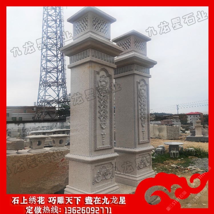 發(fā)布信息: 院子大門石柱價(jià)格 石材大門門柱造型圖片——九龍星石業(yè)。 ? ??石材大門門柱造型圖片的形態(tài)與構(gòu)成中國柱式的斗栱從單層發(fā)展至多層,由較基本的四鋪?zhàn)髂酥涟l(fā)展到八鋪?zhàn)?,形成一種十分精巧獨(dú)特的構(gòu)造,外觀上給人復(fù)雜多變、神秘莫測(cè)的感覺。斗栱的構(gòu)件又都是一些較小的部件,如“枓”、“栱”、“昂”等。將這些較小的部件以榫卯形式搭接咬合,組成一組整體性的空間框架體系,使人嘆為觀止。 ? ??院子大門石柱在低層或多層建筑中,當(dāng)層高較高時(shí),室內(nèi)空間中會(huì)出現(xiàn)過分細(xì)長的柱子,使別墅圓柱子形態(tài)缺乏一定的張力,因此可采取相應(yīng)的裝飾設(shè)計(jì)方法從視覺上擴(kuò)張柱子的橫向體量感。 ? ??院子大門石柱的直徑和高度主要取決于荒料的尺寸,較小直徑一般為100mm,較大直徑小于等于2000mm;不論是整體的、還是部分的圓柱,其單體高度一般小于5000mm,但也有一些高度超過5000mm的特殊圓柱。標(biāo)準(zhǔn)的別墅大門石材柱子包括柱礎(chǔ)、柱體和柱帽三個(gè)部分。
