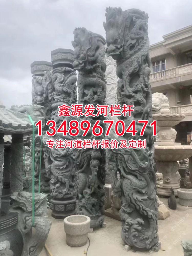 龍鳳柱子芝麻黑芝麻灰龍鳳圓柱文化柱子寺廟盤龍柱雕塑
