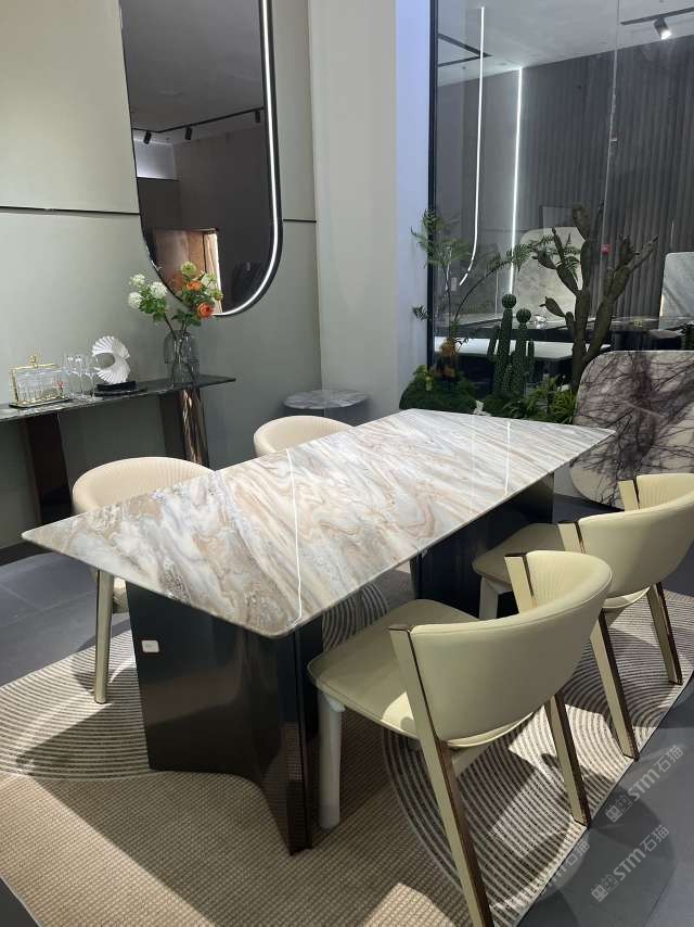 實木結(jié)合五金奢石餐桌:意大利威尼斯棕#奢石家居中心