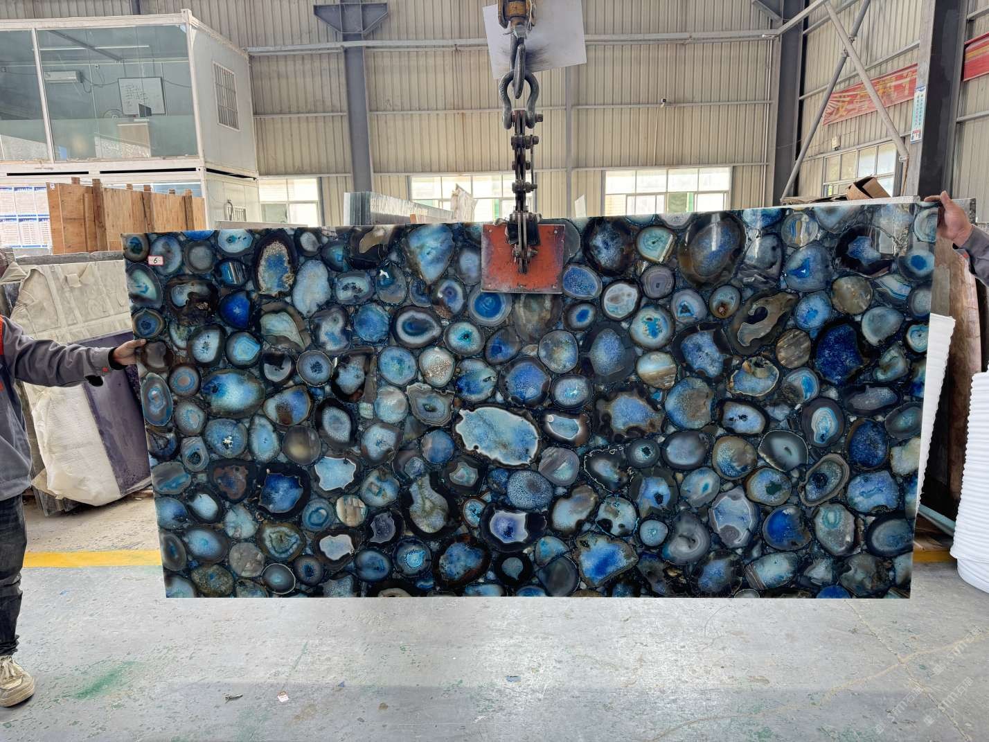 實(shí)心通體藍(lán)瑪瑙大板,高端透光石材,半寶石板材定制
