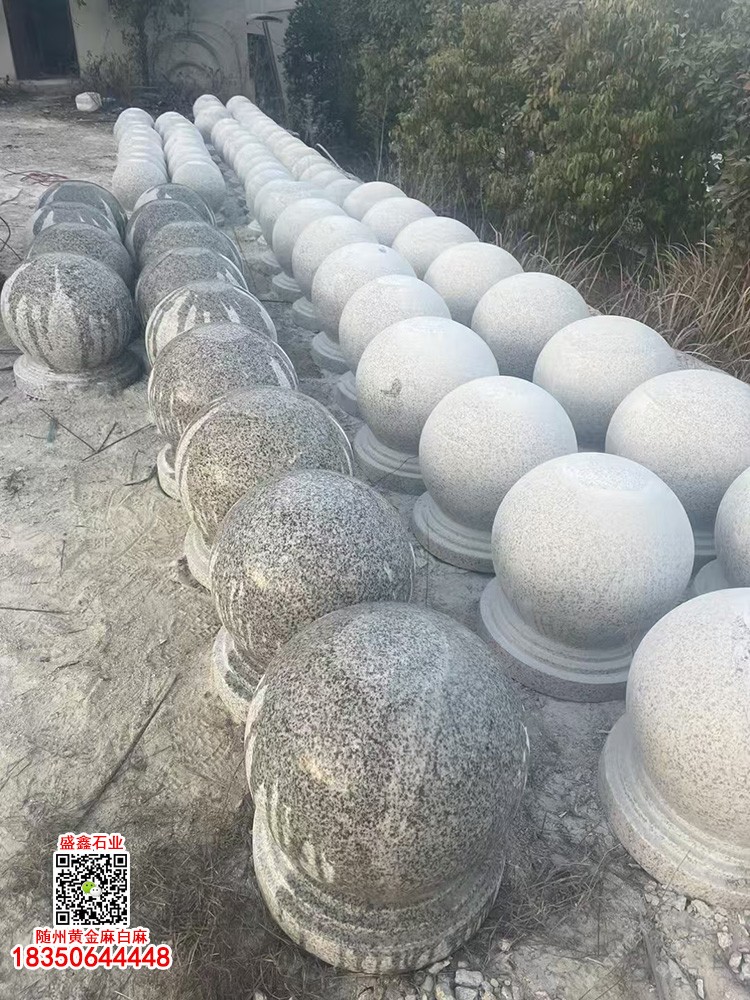 湖北白麻石材擋車石球路障石球車止石灰色石材阻車圓球