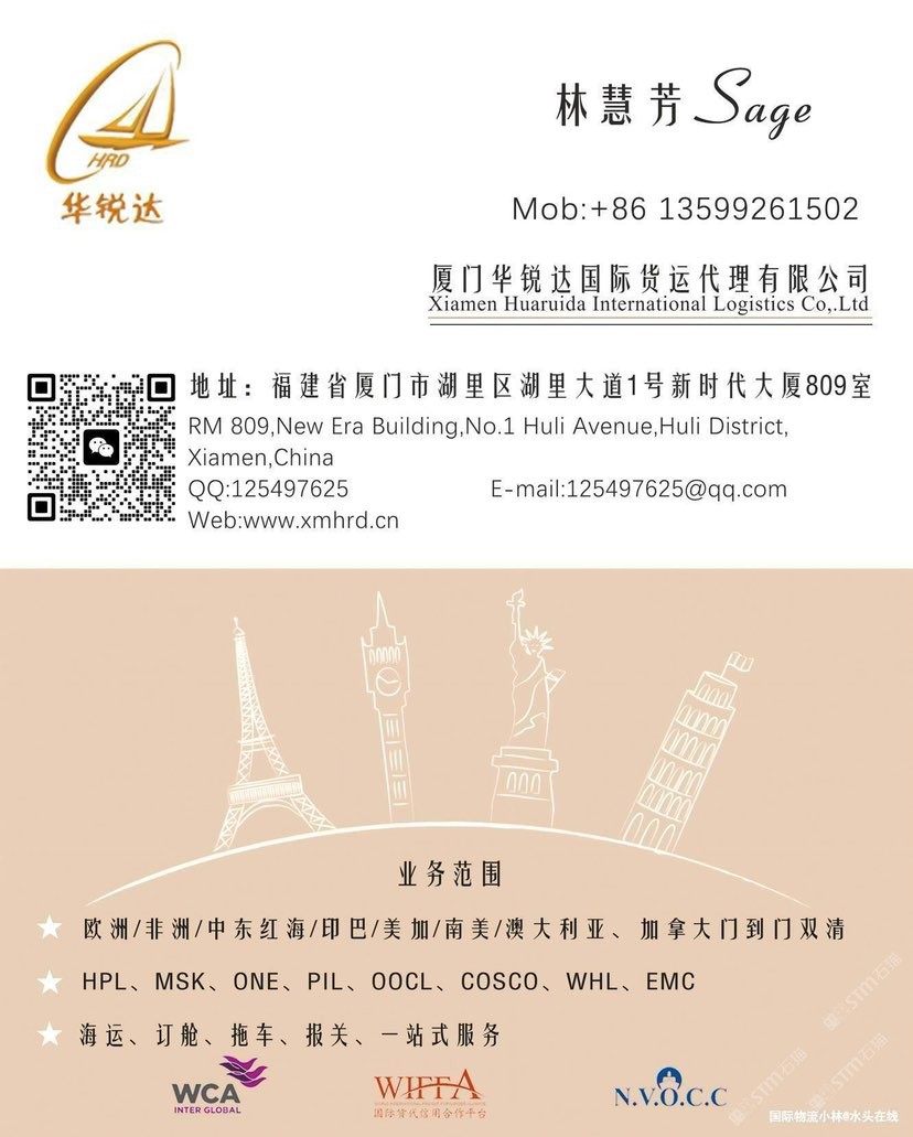 發(fā)布信息: 廈門(mén)華銳達(dá)國(guó)際物流專(zhuān)業(yè)石材國(guó)際運(yùn)輸服務(wù),全面覆蓋歐洲、非洲、中東、印巴(印度/巴基斯坦)、南美、澳大利亞及中亞五國(guó)等全球主要市場(chǎng),確保您的石材安全、高效抵達(dá)目的地 歡迎詢(xún)價(jià)13599261502