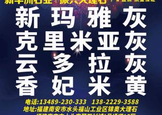 云浮市百家國際石材城主營產(chǎn)品:碧海云天,金鑲玉,羅曼蒂克灰,雅士灰,魚肚灰,布魯斯灰,南斯拉夫白,雅士白,大花白(人造石),太空灰,雪花白,魚肚白,中花白,紫山水,奧蘭多灰,藍(lán)江水月,白蘑菇,帕斯高灰,貝加爾湖,灰太狼,紅蜘蛛,爵士白,歐亞木紋,雅典紅,意大利金沙,越南水晶白,波斯灰,法國灰,古堡灰,廣西白,景泰藍(lán),巴西棕,格蘭云天,金色山脈,金色雪山,藍(lán)色羅馬,夢幻藍(lán),夢幻水晶,盛世紅顏,天空藍(lán),香奈兒灰,雪山飛狐,雪山蘭,雪山銀狐,在水一方,阿富汗白玉,白冰玉,黑海玉,紅寶石,金藍(lán)玉,橘子玉,老虎玉,里昂灰,蜜桃玉,七彩瑪瑙,麒麟玉,淺青玉,直紋青玉,雅柏白,雅柏灰,云多拉灰,云水藍(lán),歐亞灰,愛馬仕灰,皇家紅,灰姑娘,金鳳凰,桔子玉,卡地亞灰,藍(lán)色星空,冷翡翠,瑪瑙黃,檀香木紋,蔚藍(lán)海岸,卡地亞灰(廣西),伯爵白,布加迪灰,布加迪金,大象白,東方白,卡士白,普拉達(dá)綠(雪花綠),云霧白,意大利藍(lán)慕莎,太平洋暖灰,白木紋,幻影灰,銀河灰,星夜灰,君子蘭,卡斯貝克,印象白,白玉,冰花玉,紅龍玉,灰石,莎安娜,山水畫,伯爵灰,意大利灰,飛龍?jiān)谔?啡金沙,古雅灰,凱恩斯灰,宇宙金,奧利奧灰,牡丹灰,星白,星脈藍(lán),星耀灰,潮流灰,塞浦路斯灰,白玉蘭,國際灰,卡佐啡,現(xiàn)代灰,小魚肚白,雅格白,亞洲灰,黑石,藍(lán)色妖姬,金摩卡,凱悅紅,美娜灰,白海棠,拜倫黑金,蜘蛛玉,范思哲黑,皇家綠,黃藍(lán)虎眼,新莎安娜,歐亞白,阿爾卑斯白,卡拉卡塔白,勞倫白金,勞倫黑金,西班牙灰,扎哈灰,亞馬遜綠(巖板),北歐灰,橄欖灰,水墨玉,紫玉,卡拉拉白,溫德姆灰,玻利維亞藍(lán),夢幻灰,星灰,安格拉米黃,白金摩卡,德黑蘭,海洋白,荷塘月色,黑摩卡,黑天鵝,灰摩卡,吉尼斯紅,極光,咖啡金,太陽紅,天堂鳥,銀河木紋,皇家白玉,夢幻藍(lán)寶,潘朵拉,亞馬遜綠,玫瑰冰玉,畢加索,黑龍玉,寒江雪,意大利藍(lán)金沙,新藍(lán)貝露,意大利白金沙,灰金沙,巴西灰,芝麻黑,奧巴馬木紋1,奧巴馬木紋,維多利亞灰,新普拉達(dá)綠,大花綠(意大利),山水魚肚白,綠野仙蹤,馬德里灰,香格里拉,勞倫黑金(粗紋),潘多拉(老礦),潘多拉(巴西礦),巴達(dá)哥尼亞,魚肚白金,魚肚金,魚肚金(意大利正礦),溫德姆灰(柬埔寨),莎安娜灰,莎安娜灰(阿拉礦),寶格麗,宇宙金(巴西),保加利亞灰,森巴,白金沙,藍(lán)金沙,哥倫比亞白,哥倫比亞白(斜紋),玉石,紅寶石2,玫瑰彩虹,布魯斯灰1,白雪公主,青玉,紅龍玉5,黑瑪瑙(透光),藍(lán)瑪瑙,梵星灰,蘋果灰(新礦),大花綠,希臘大花綠,蘋果灰,香雪梅,安第斯棕,迪奧藍(lán),銀杉,古堡灰(老礦),意大利皇家白,意大利皇家灰,摩卡石,雅士白(希臘礦),摩卡石1,阿波羅,金摩卡(天堂鳥),克里米亞灰,溫德姆灰(鴻享礦),威尼斯棕,尼斯灰,羅威萊姆石,凱旋門,白奶酪(萊姆石),葡萄牙米黃,雨果石(萊姆石),歌德石(萊姆石),萊姆石,維多利亞藍(lán)(意大利),卡地亞灰8,卡地亞灰(淺色),星灰(夢幻白),拿破侖黑(法國),英格蘭灰(老礦),大花白(大理石),愛爾蘭,菩提灰,魚肚金(巖板),魚肚白微晶石,奢石藍(lán),啡慕斯,萊茵灰,古典娜灰,奧巴馬木紋(反切),凡爾賽金(巴西),云朵拉灰,新天空藍(lán),愛馬仕灰2,愛馬仕灰3,愛馬仕灰(深),愛馬仕灰(廣東),愛馬仕灰4,愛馬仕灰6,愛馬仕灰7,愛馬仕灰(白底),愛馬仕灰(土耳其礦),愛馬仕灰(淺底),愛馬仕灰(伯爵灰),愛馬仕灰(國產(chǎn)),愛馬仕灰(廣西礦),愛馬仕灰(土耳其老礦),愛馬仕灰(深藍(lán)底),愛馬仕藍(lán)(意大利),愛馬仕灰(廣東新礦),愛馬仕灰(伊朗),冰龍玉,巴寶莉,藍(lán)水晶,藍(lán)水晶(巴西),博洛尼亞灰,新橄欖灰,魚肚灰(國產(chǎn)新礦),愛爾蘭綠,寶格麗黑(法國),名仕灰,寶格麗金,米蘭灰,泊爾灰,藍(lán)翡翠,盧卡灰(伊朗礦),卡拉拉灰,萬壽紅,莎安娜(老礦),莎安娜米黃,云多雅灰,巴菲特金(奢石),凡爾賽金(意大利礦),歐洲木紋,美尼斯金,美尼斯金1,美尼斯金2,香格里拉翡翠,雅典黑金花,意大利黑金花,瑪莎拉蒂灰,貝金米黃,瑪瑙灰(西班牙),奧特曼灰,白洞石,佛羅倫薩灰2,意大利藍(lán),宇宙黑,曼哈頓黑,海王星,銀河黑,百達(dá)翡麗1,百達(dá)翡麗,四季綠(奢石),四季綠,鉑金鉆(光面),月夜繁星,翡翠綠,翡翠綠2,寶格麗黑(國產(chǎn)),圣誕米黃,珊瑚海,波斯白玉,波斯白玉(緬甸),芬迪白,鉑金鉆(皮革面),寶格麗白,寶格麗白(意大利礦),孔雀開屏1,孔雀開屏,百達(dá)翡翠(巴西礦),敦煌印象,煙雨江南,煙雨江南(意大利),古馳黑,大花白,綠野仙蹤(亂紋),綠瑪瑙,維多利亞綠,煙粉(意大利礦),煙粉(葡萄牙礦),熊貓白,熊貓白(水墨印象),巴西熊貓白,奶油玫瑰,寶格麗黑,細(xì)花白,卡拉拉白2,寶格麗紫,貓眼綠,紅瑪瑙,黃金玉,威尼斯棕(新礦),威尼斯棕(國產(chǎn)),四季粉,普拉達(dá)綠,鵝卵石企業(yè)地址:廣東云浮云浮市云城區(qū)河口百家國際石材城