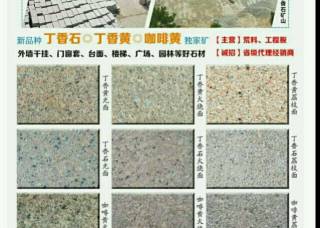 福建金湖石業(yè)主營產(chǎn)品:丁香黃(光面),丁香黃(火燒面),丁香黃,丁香石,丁香石(光面),丁香石(火燒面),五彩紅,珍珠蘭(花崗巖),藍(lán)寶石企業(yè)地址:福建三明泰寧縣大龍鄉(xiāng)