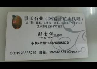 品正玉石主營產(chǎn)品:白玉,白玉3,白玉1,白玉5,冰白玉,白雪公主,新白雪公主,青玉,青玉1,古青玉,古青玉(深色),白青玉,淺青玉2,粉玉,藍(lán)玉,藍(lán)玉4企業(yè)地址:廣東云浮云城區(qū)G80(廣昆高速)石運(yùn)亨通石材交易中心
