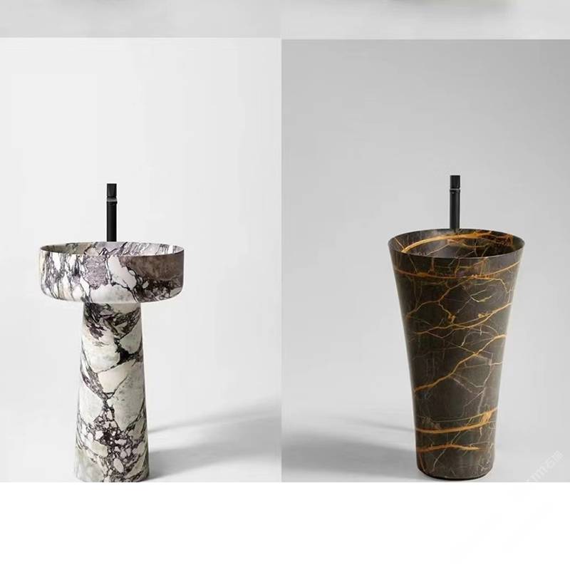 描述:石材立柱盆,具有不同形狀和尺寸的獨(dú)立元素,與衛(wèi)浴產(chǎn)品結(jié)合在一起。